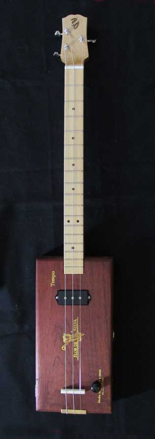 Un modèle sur commande : 2 micros + correcteurs sur Partagas N°2 et, sur une idée de John Lowe, une première avec manche de râteau et deux cordes, en attendant la "3 cordes" dont voici la réalisation